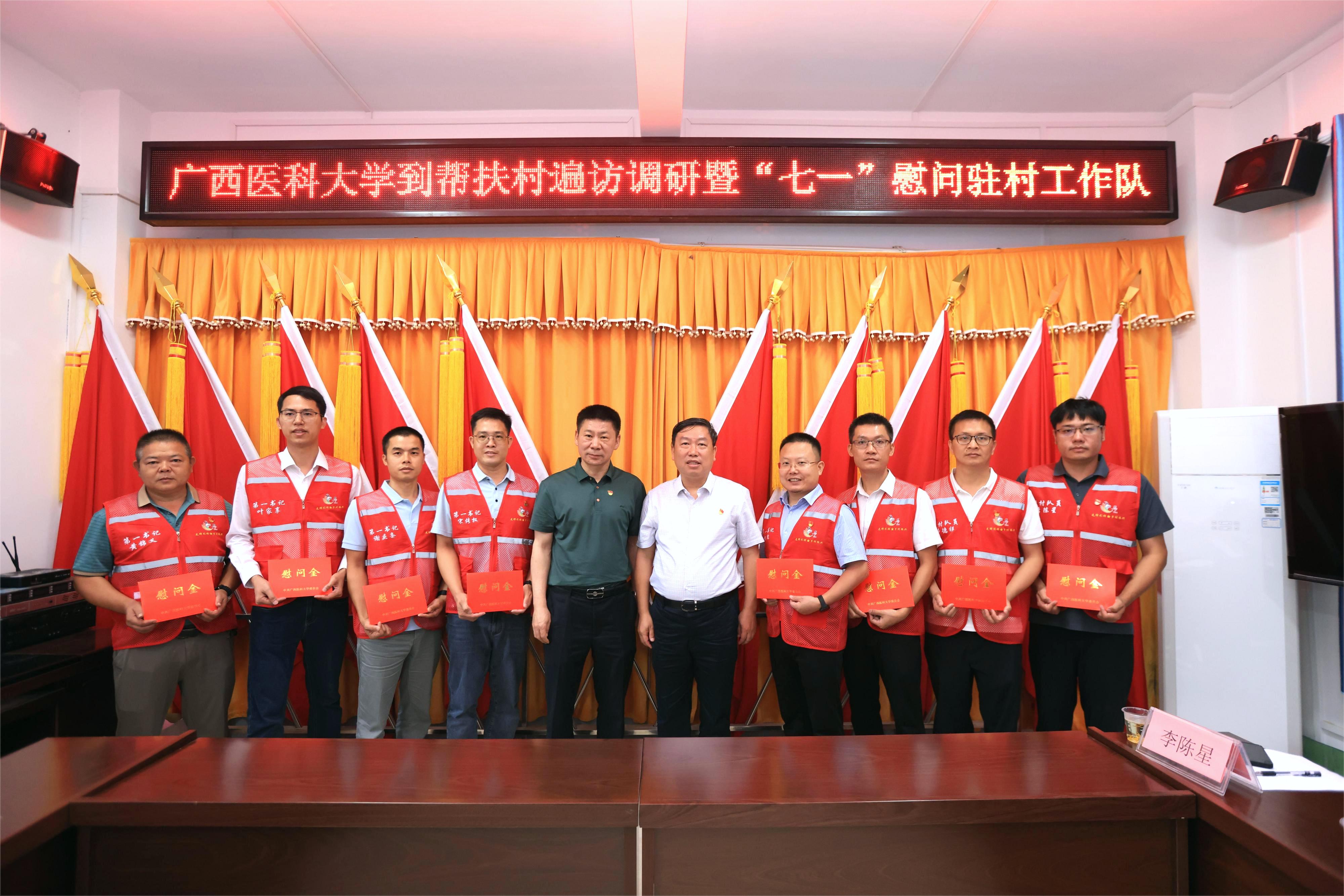 6月26—27日,学校党委书记、乡村振兴工作领导小组组长陈川带队赴马山县定点帮扶村开展遍访调研暨“七一”前慰问驻村第一书记(工作队员)活动。学校党委常委、副校长陈俊强,马山县委书记穆贤清,马山县委常委、副县长、驻村工作队队长陆江参加有关活动。